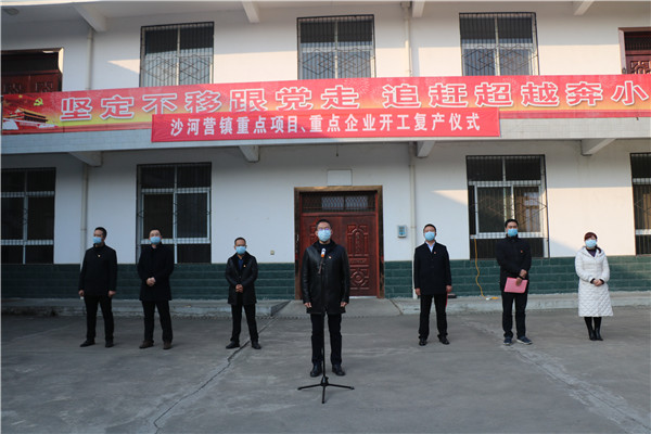 開工儀式上,沙河營鎮(zhèn)黨委副書記、鎮(zhèn)長肖利安緊緊圍繞各開工復(fù)工的重點(diǎn)項(xiàng)目和重點(diǎn)企業(yè)在新型冠狀病毒肺炎疫情期間防控防護(hù)和應(yīng)對(duì)措施做了闡述,要求各企業(yè)在保證員工健康安全的前提下,加大生產(chǎn)力度,追趕一季度生產(chǎn)目標(biāo)。